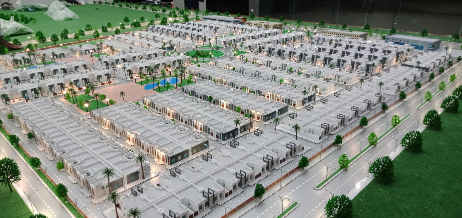 The 3D model for Gohar Villas Karachi was developed at a 1:500 scale to represent the complete urban masterplan of this plotted residential community. Designed for both planning and presentation purposes, the model illustrates the full layout of residential plots, road networks, parks, commercial areas, and main access points with clarity and precision. Each house was constructed as a separate unit to enhance depth and definition across the model. A single villa was selected and detailed further with working interior LED lights, giving prospective buyers a realistic sense of the future living space.